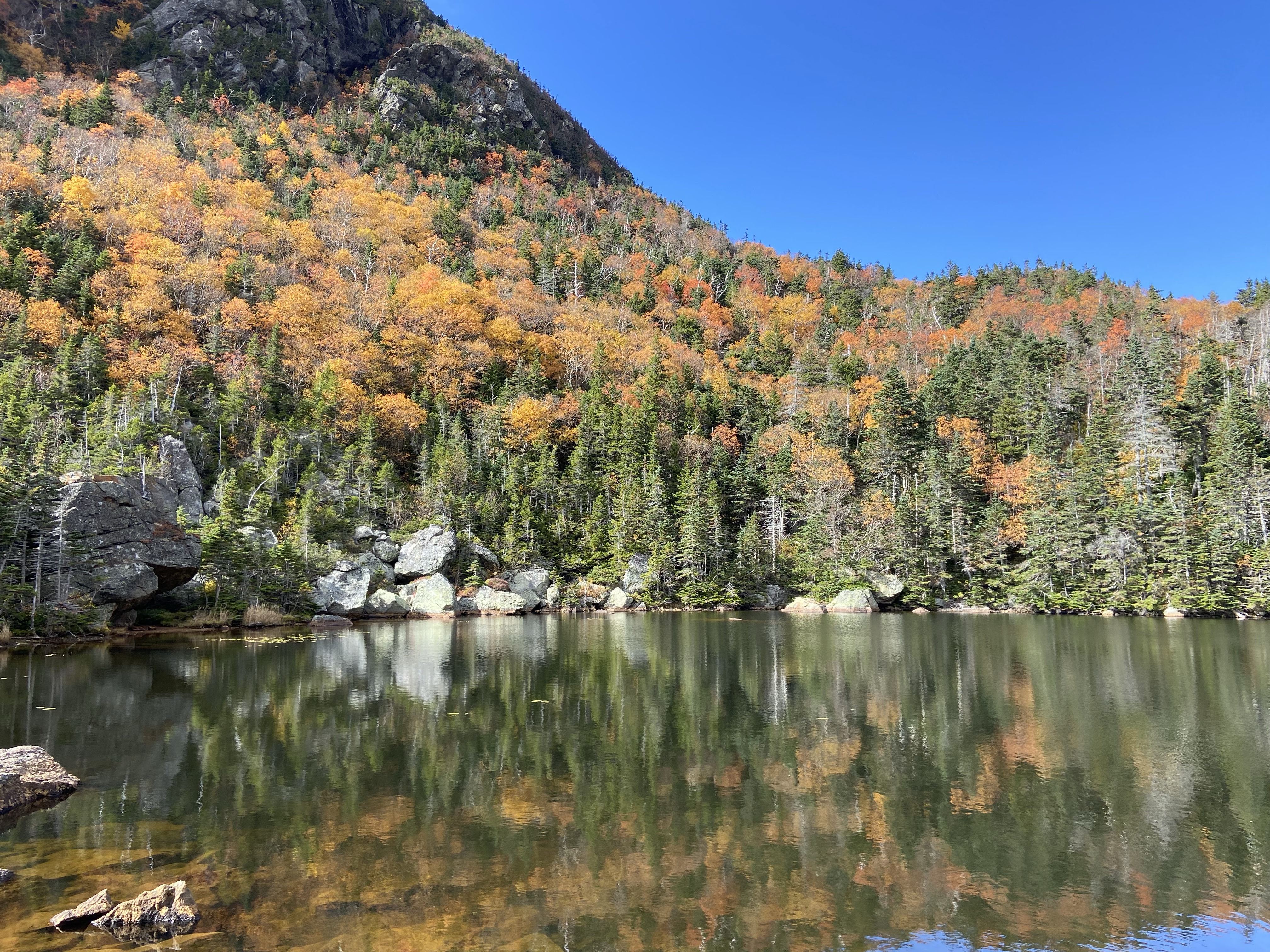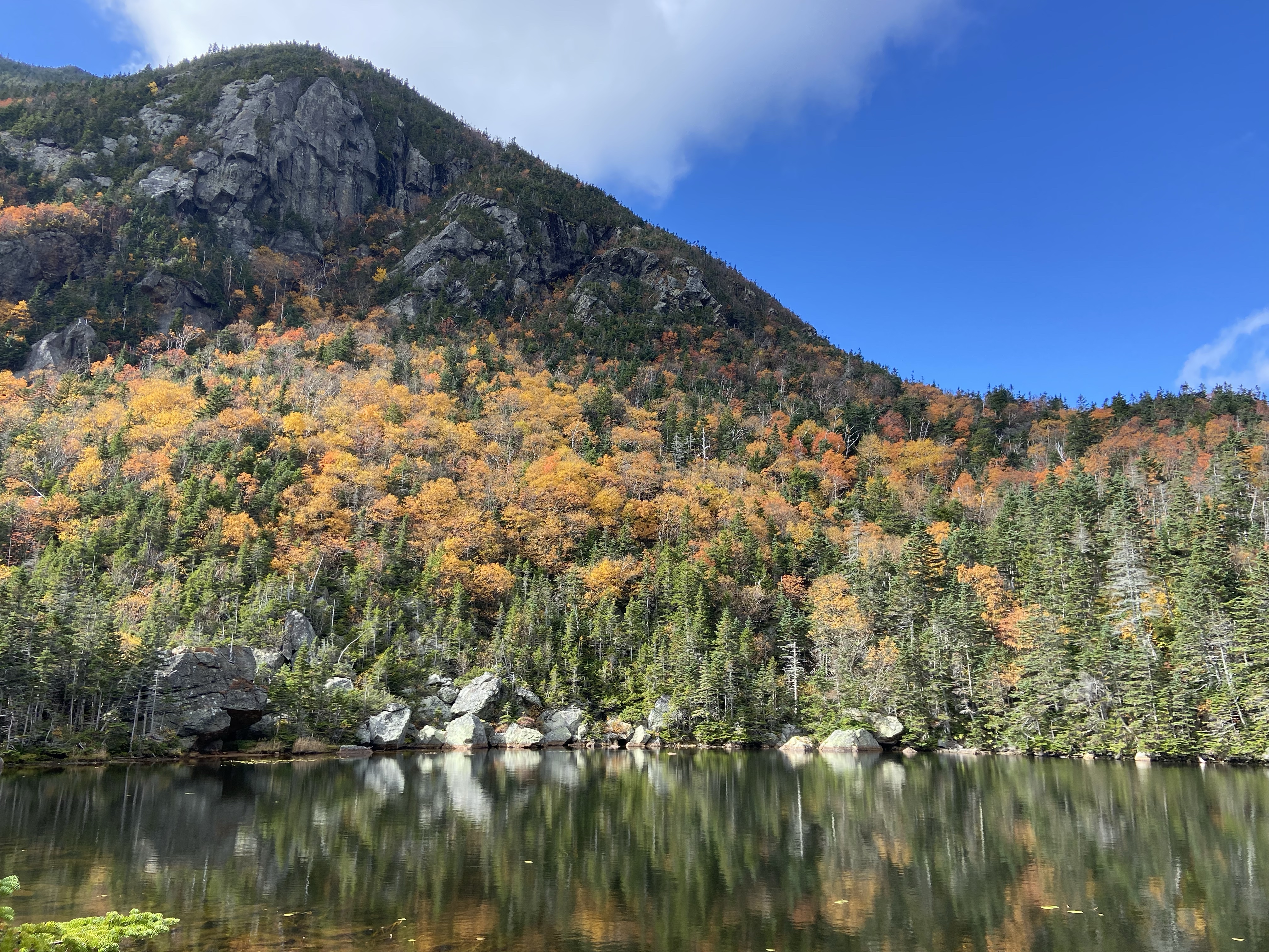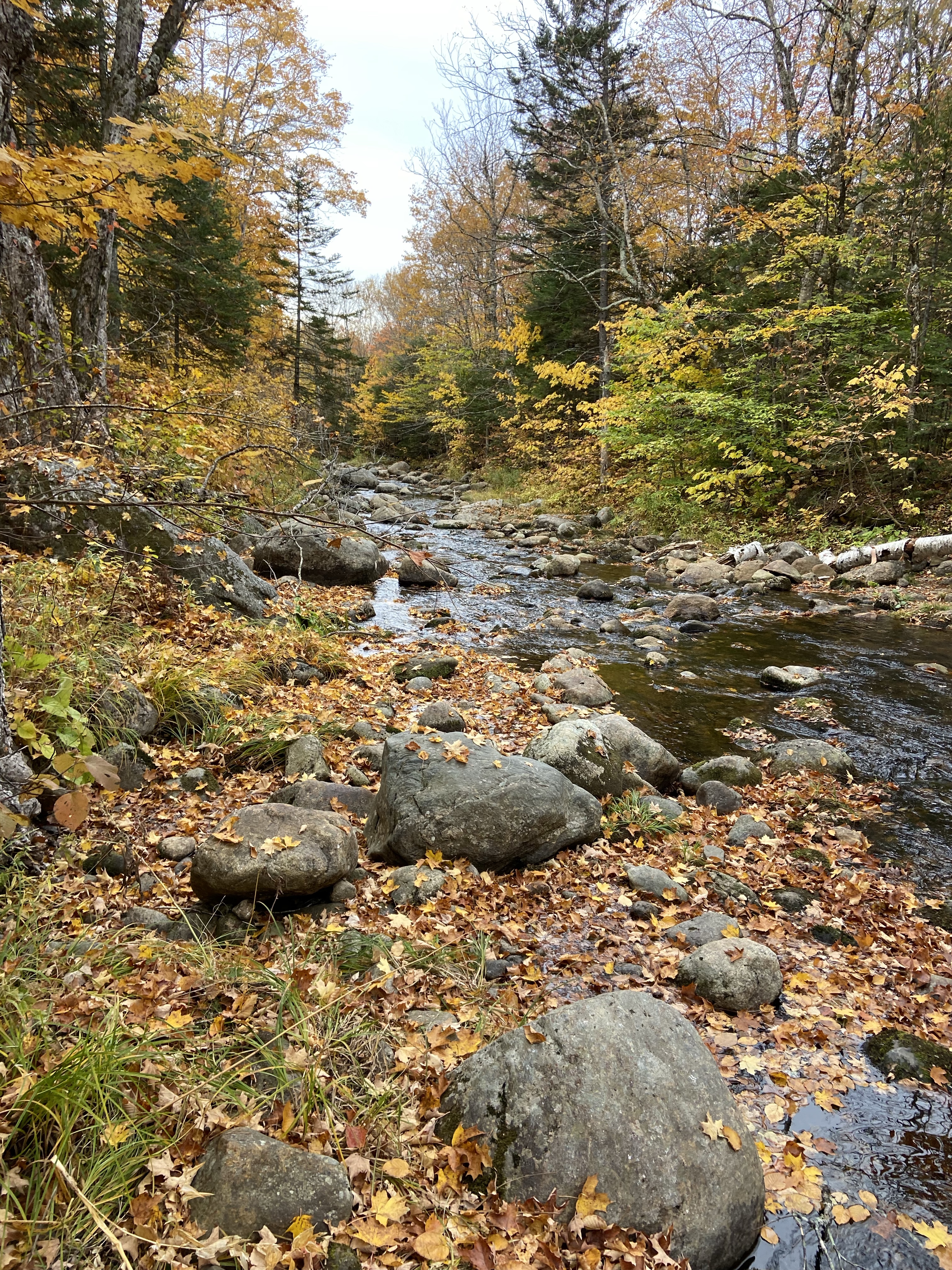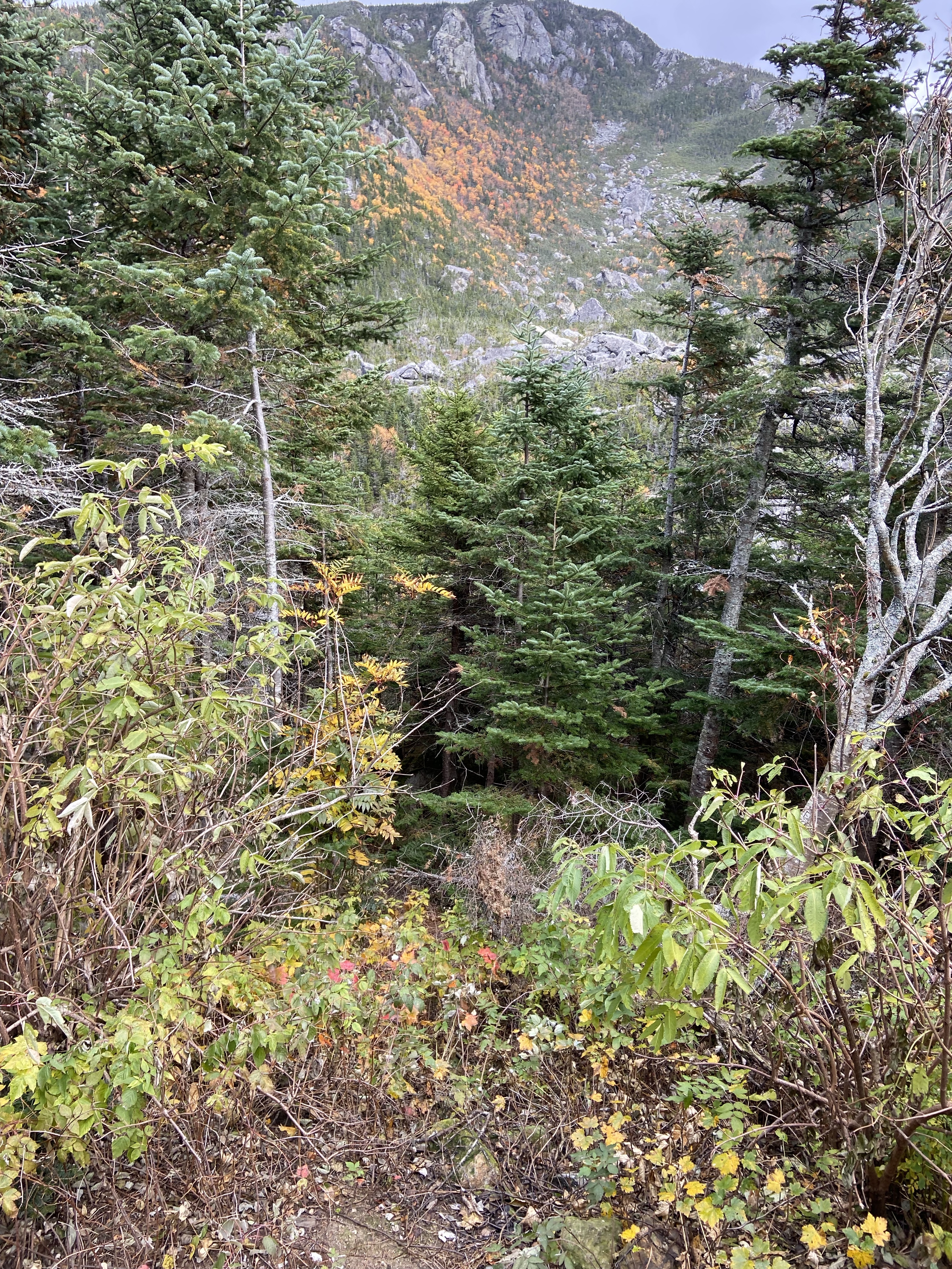 We started at the Bog Brook Trail which is a beautiful trail in and of itself and gave us a nice little gradual warmup with many (at least five) water crossings which kept us on our toes. We then got to the junction of Wild River Trail which is another beauty and one that we had been on the other end of when we climbed Moriah a few months ago. I think the Wild River Wilderness is my favorite of all the Wilderness areas in the Whites – it just has this feeling of total isolation and peace which is becoming more and more rare in the White Mountains as chasing “the list” and hiking and general has become more popular. The trail also apparently acts as a super highway for moose in the area based on the “evidence” we have seen on this trail, but unfortunately we have yet to come across one on trail in all of our miles of hiking. Jen and I joke that we are going to see a moose or a bear on our little town trails in southern NH during a trail run before we see one on our of our epic, remote adventures in northern NH. Nonetheless, the remote feeling we get on these trails in the WW Wilderness is something we both enjoy as we didn’t see a single other person until we were almost 4 hours in and close to the summit of Carter Dome. We were loving the hike in, and enjoying the beautiful fall colors which were pretty much at peak which I was excited about as I knew (at least I thought I did) what we had ahead of us when we reached the Rainbow Trail.