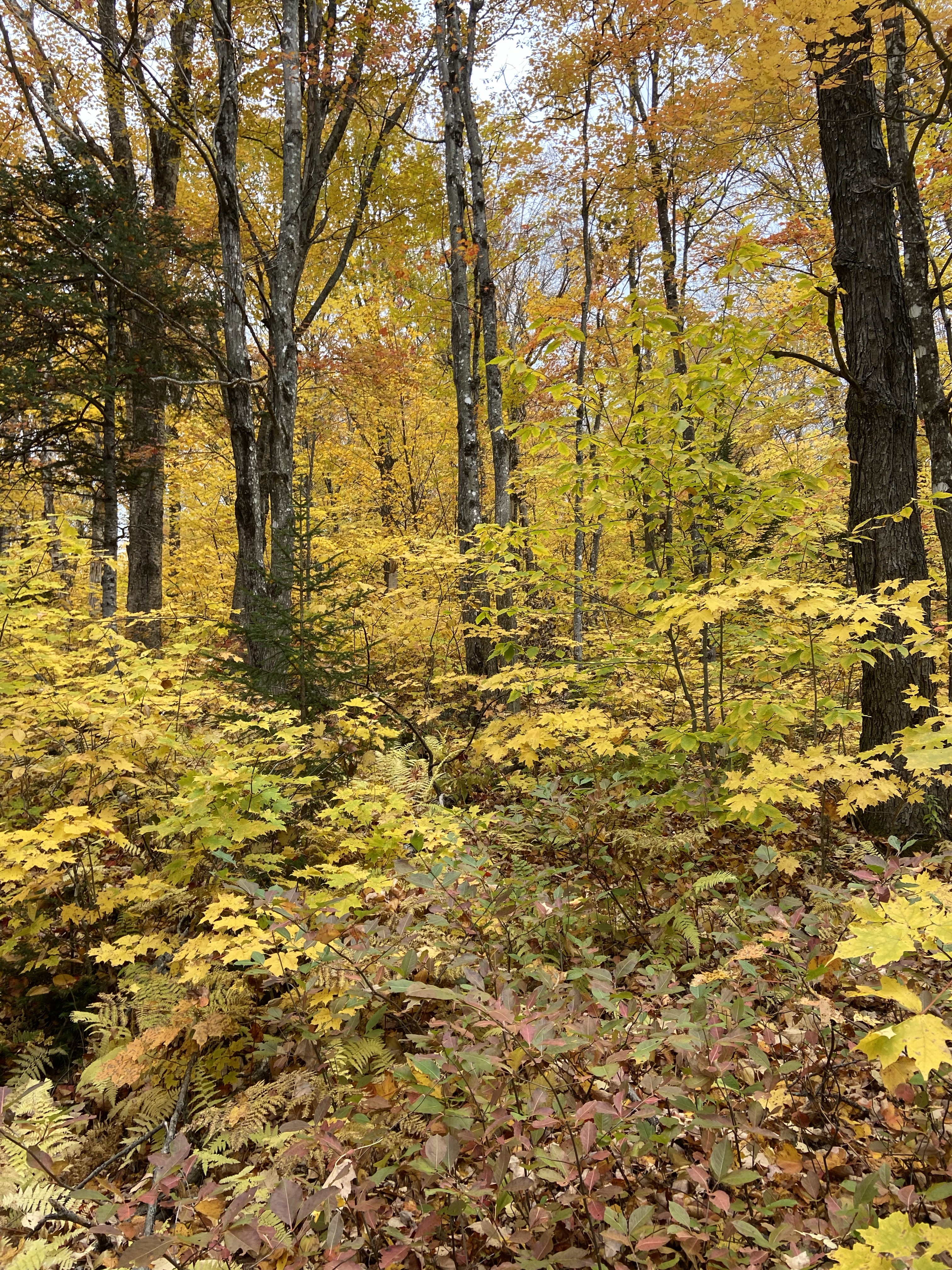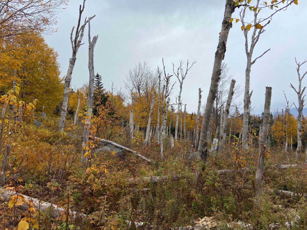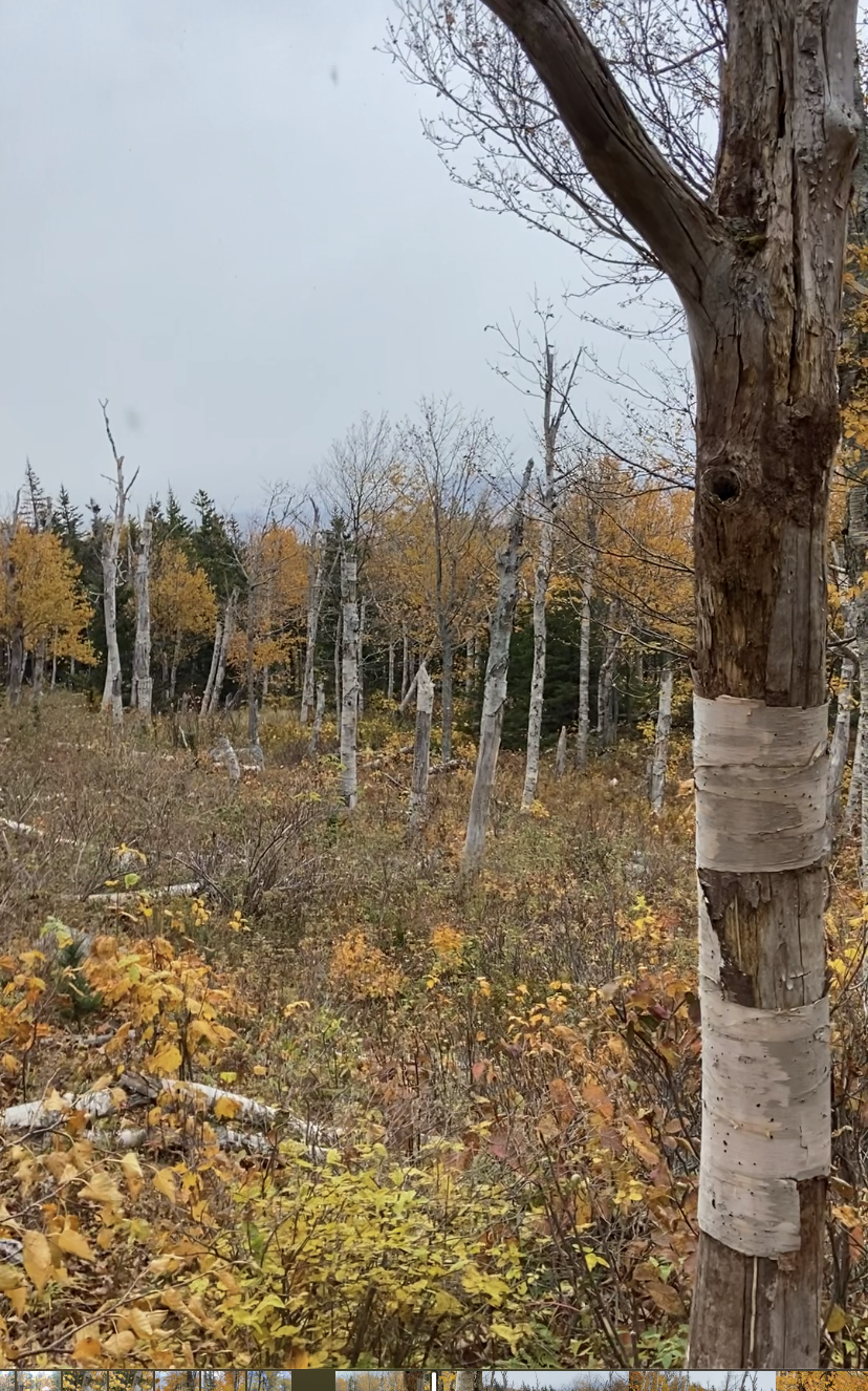 I’ve been pushing for this hike pretty much since I stumbled onto it by watching one of the very few YouTube videos on the this trail. The Rainbow Trail is widely regarded by those who know as one of the most unique and beautiful (especially at peak foliage) as one of the most gorgeous trails in NH. It has a very unique, large clearing which we later learned was caused by a massive forest fire over 100 years ago and what has grown up are sporadic birch trees which add a bit of depth and beauty which would otherwise be a ~10 acre field with the Rainbow Trail cutting right through. I talked it up quite a bit to Jen based on the research I had done and was hoping that it lived up the hype. When we started up the trail it started raining ever so slightly but then picked up a bit as we got further into the trail. I was getting nervous that this was going to be a total washout of a day which we were prepared for in regard to gear, but this was not how I envisioned this playing out in my mind. I knew we were getting close to the birch glade as I was tracking our progress on my GPS app (FarOut) and as we crested a steep section, not only did we get our first glimpse of the glade, but it started to snow! It was the first snow that Jen and I had seen since the spring and there was something about standing in the middle this beautiful birch glade together in silence but totally connected with the snow gently falling on us as that made us both a bit emotional. Although neither of us are religious it was a beautiful, spiritual moment in which we were so present in the moment and truly grateful to be fortunate enough to be there in that time and place together. Its a a feeling that I hope everyone feels at some point in their lives at least once because it truly was special. Here are some of the best photos from the glade taken directly from the trail.