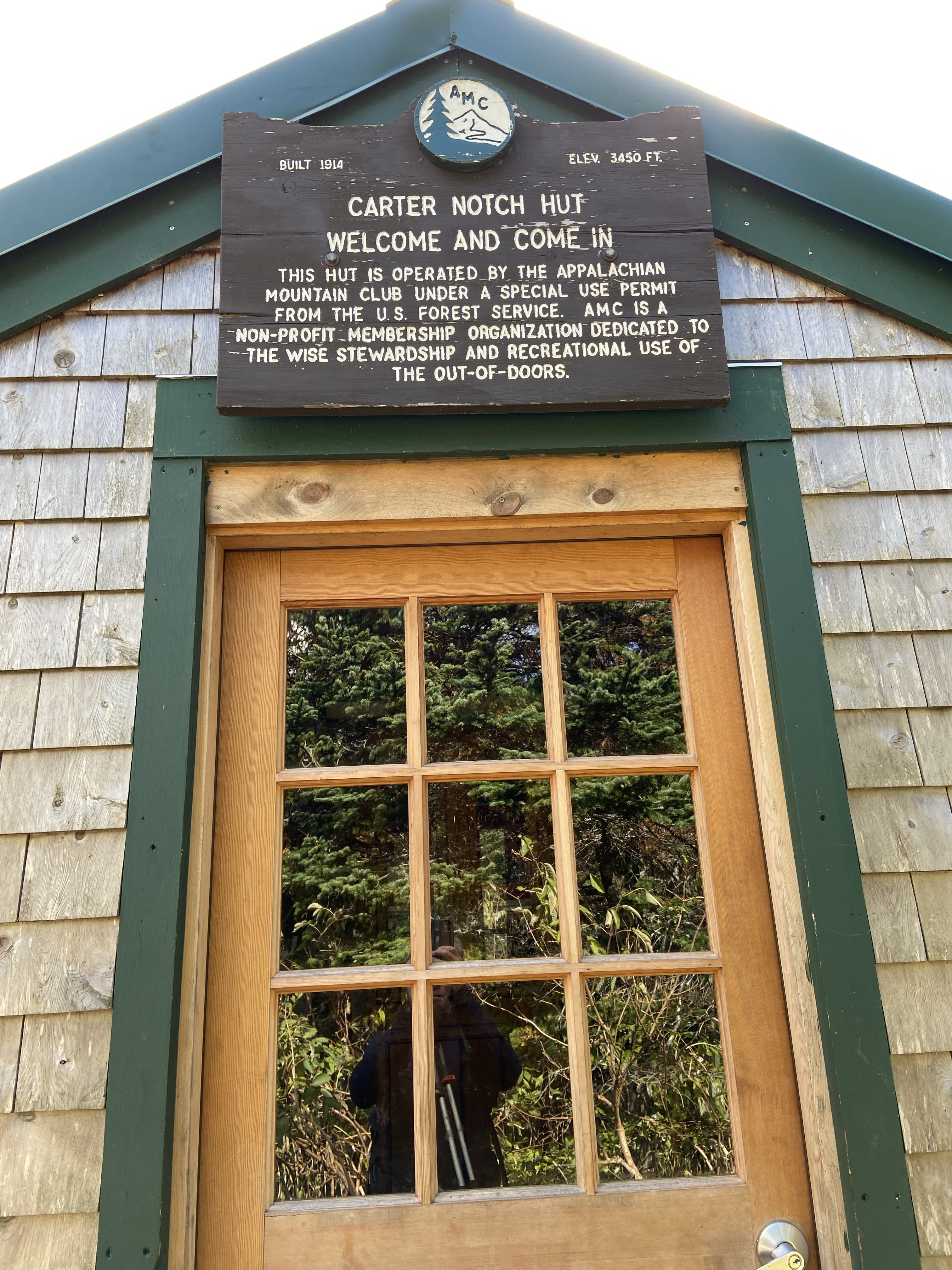 We chatted with a nice group of boy scout leaders at the summit who were backpacking for the weekend and then we were happy to get out of the cold, wind and snow on the summit which quickly subsided as we made our way down into carter Notch. The trail down to the notch from the summit was steep and slow going – I’d much rather be ascending a trail this steep than descending which in some places required three points of contact and butt sliding to get down. It was a bit tedious but we were rewarded with a great view of the Notch, including the lakes, Wildcat A, the Ramparts and Carter Notch Hut from a lookout off of a short spur trail near Pulpit Rock.